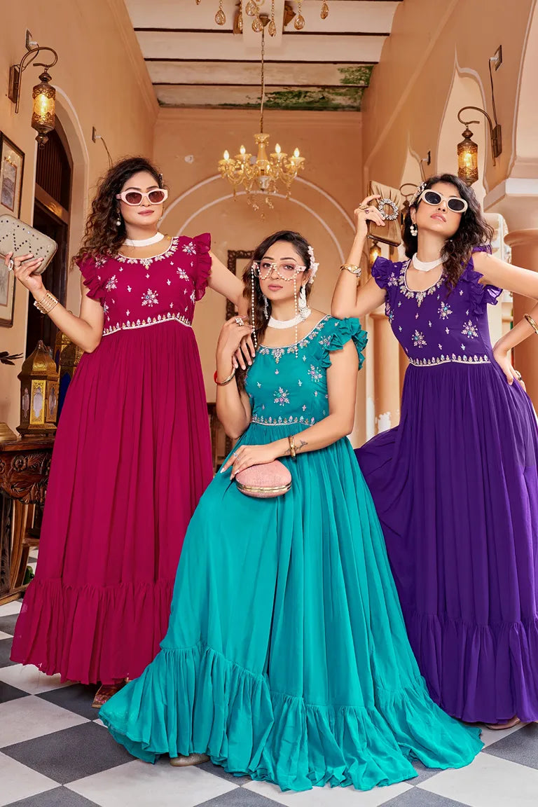 *Category:* *Women’s Ethnic Wear Ruffle Gown* *Stitching:* *Fully Stitched & Ready to Wear* *Ruffle Gown:*...