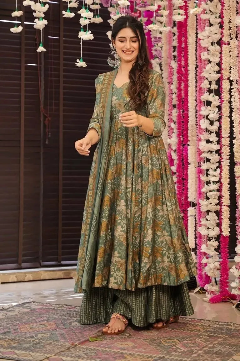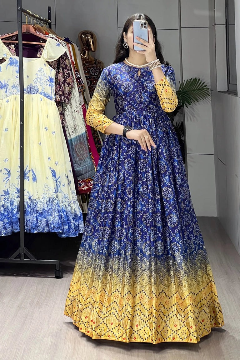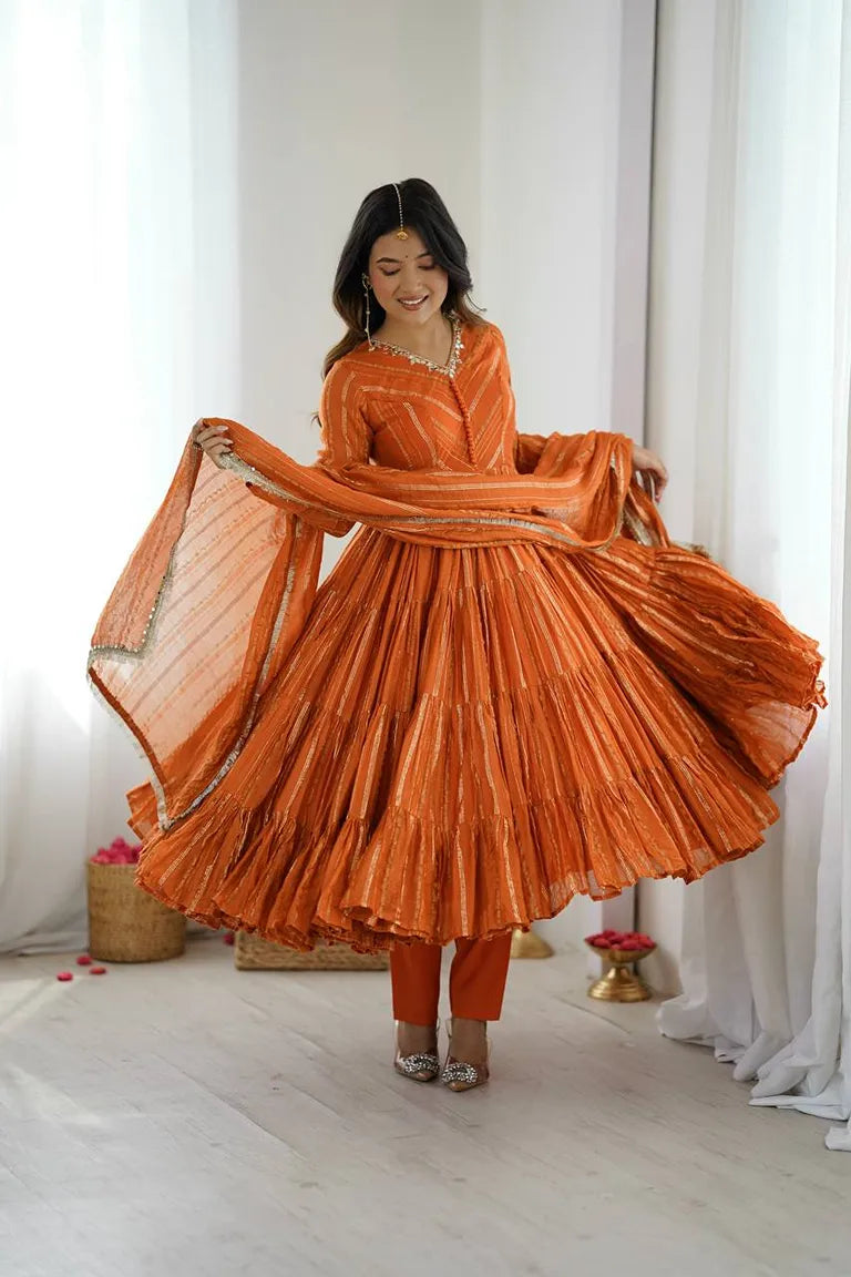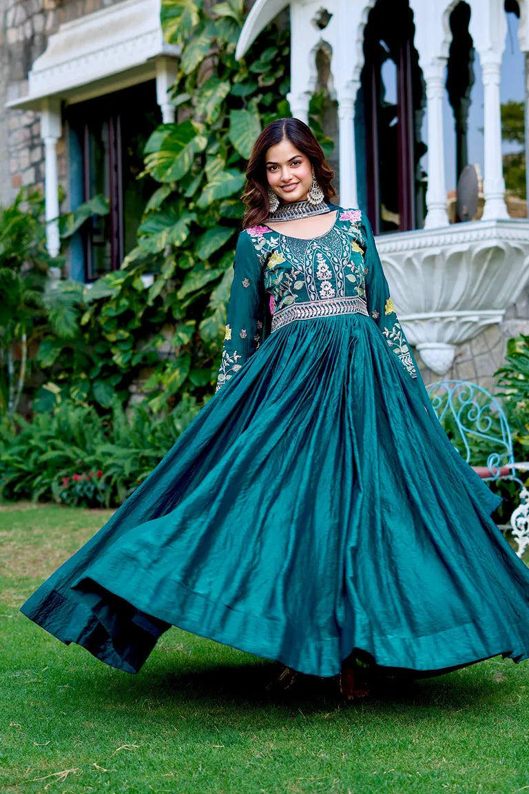 *Stitching:* *Fully Stitched & Ready to Wear* *GOWN:* • *Fabric:* *Anarkali Gown With Crunchy Silk...