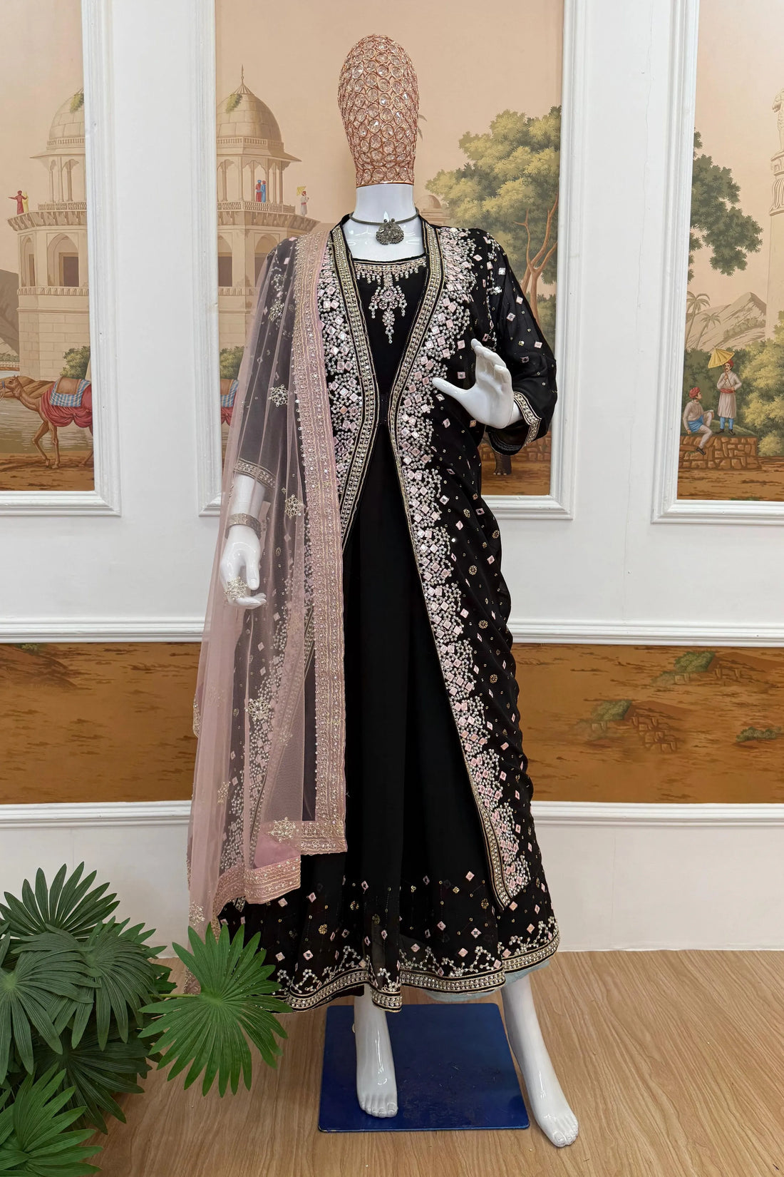 Get ready to shine with these stunning outfit Made from Faux blooming And Sequins Embroidered...