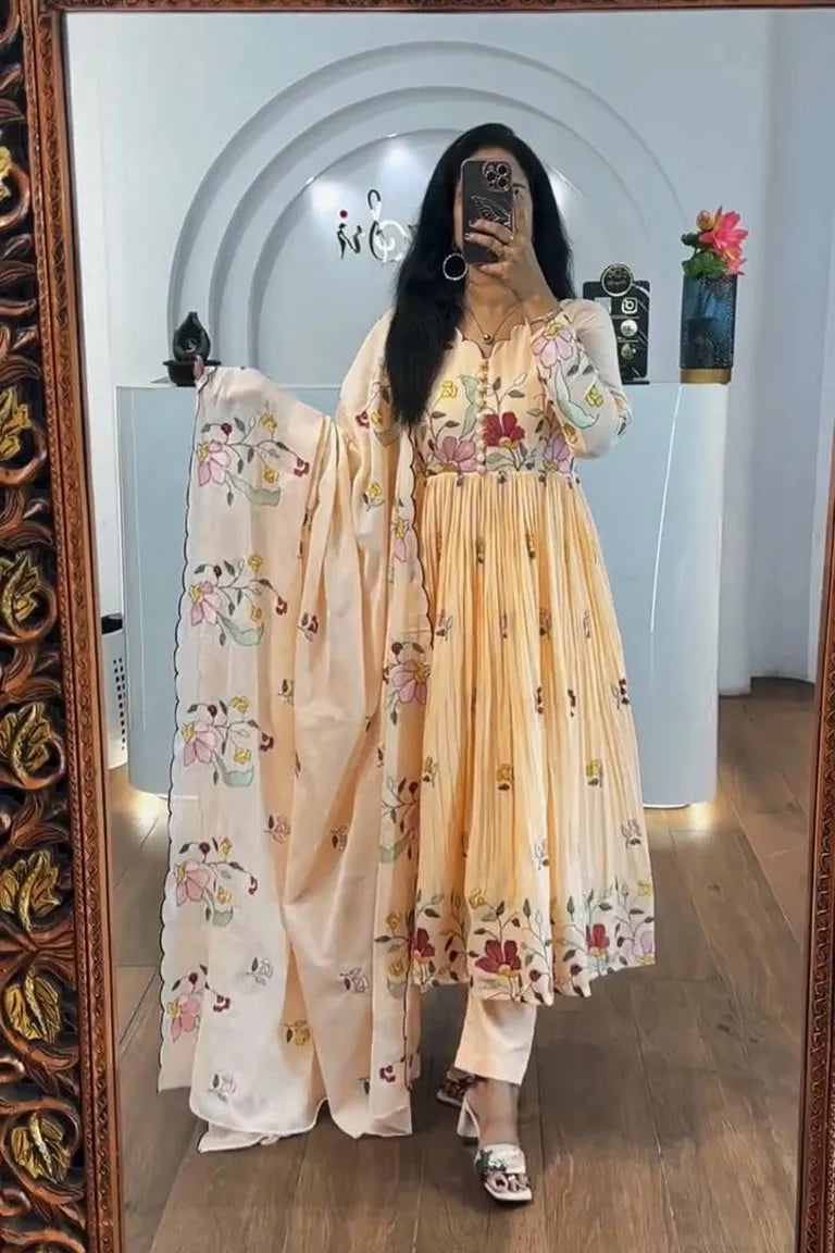Women’s Anarkali Pent Dupatta Set #TopFabric :-Rayon slubWork:- PrintedLength :- 44 inchSize:- S(36") M(38") L(40")...