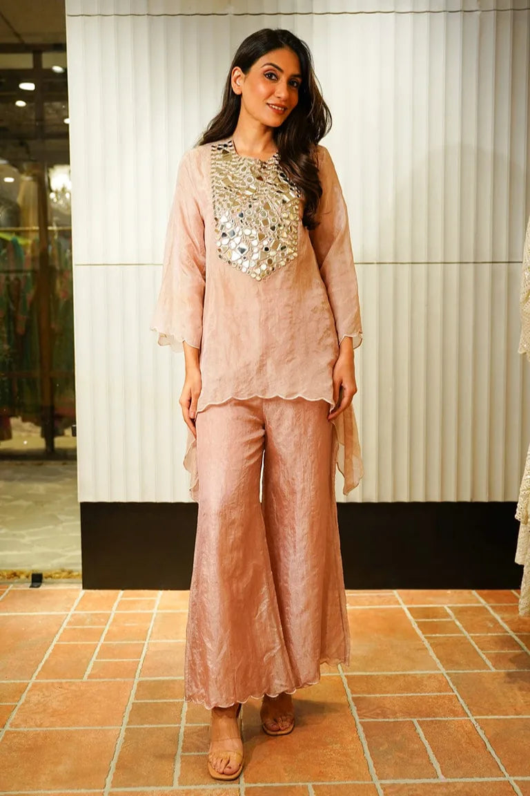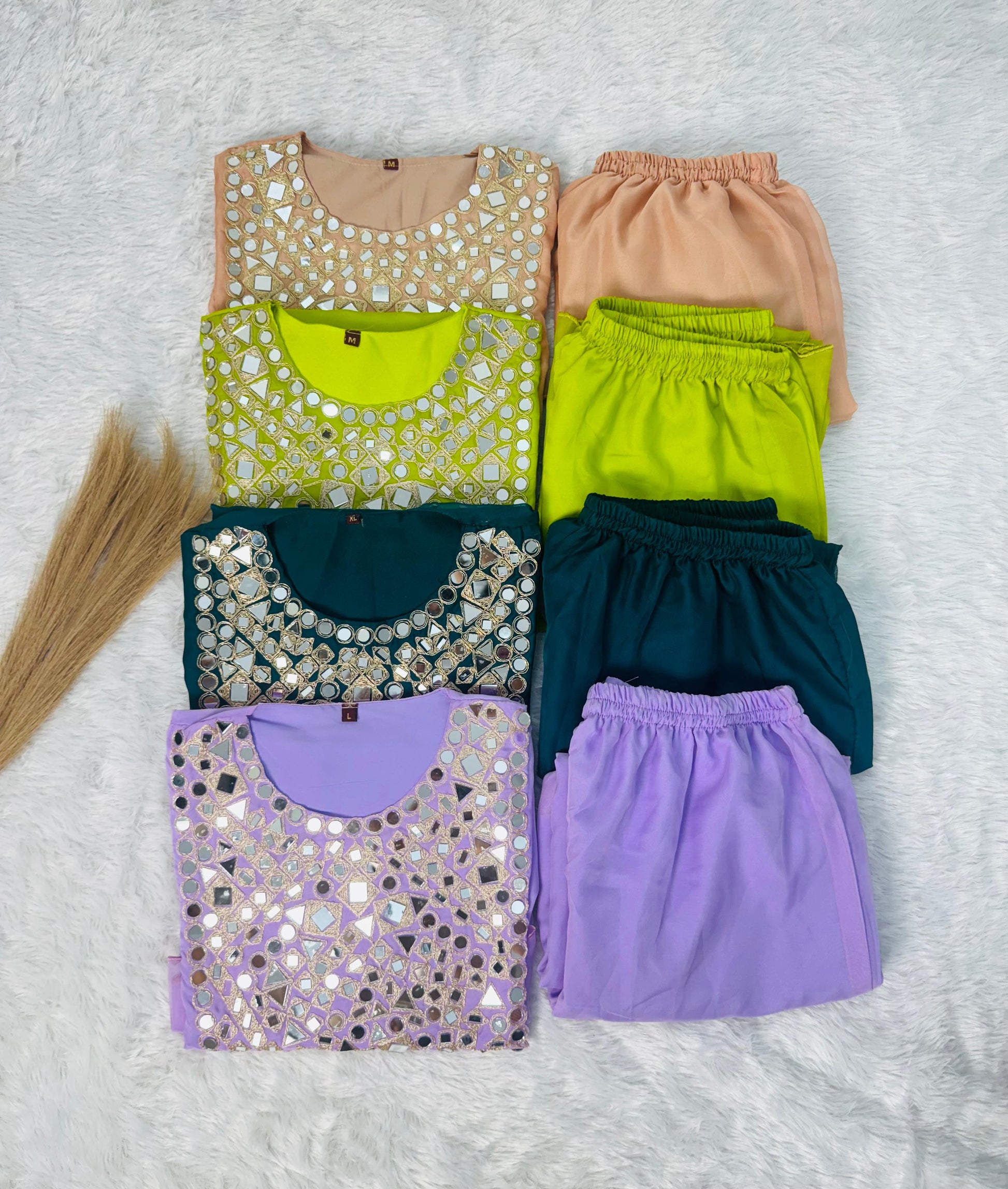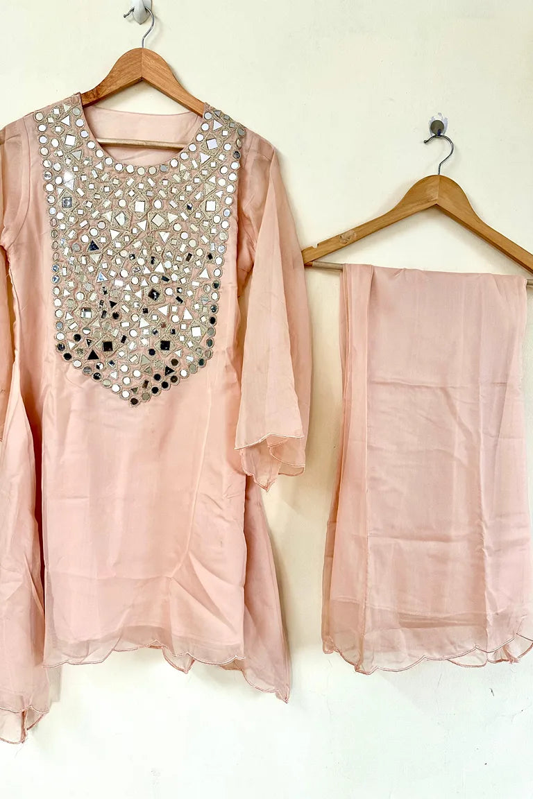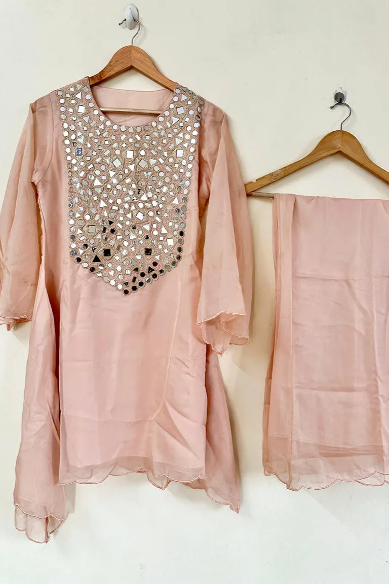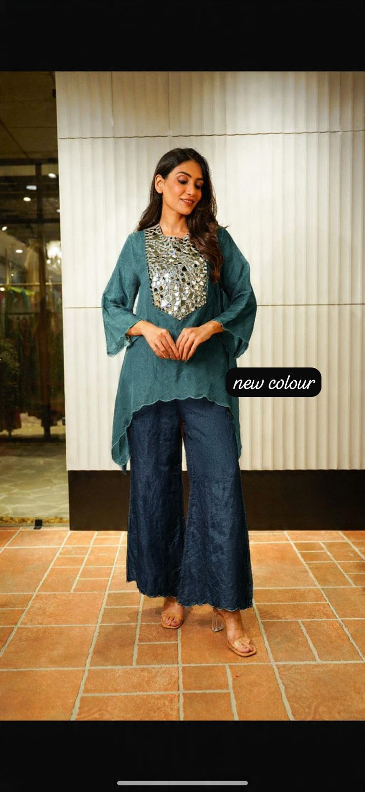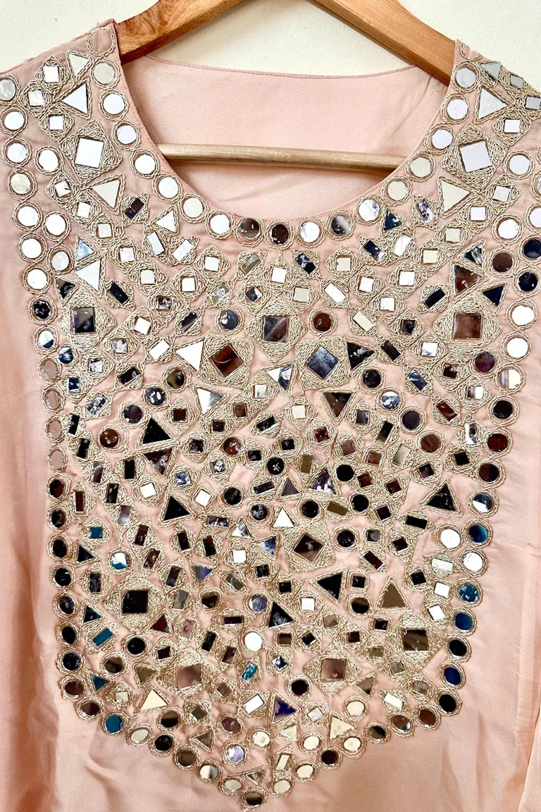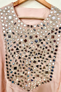 Paired with Coded Embroidery & original mirror work on yoke & Arkha Work on the edges