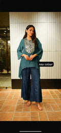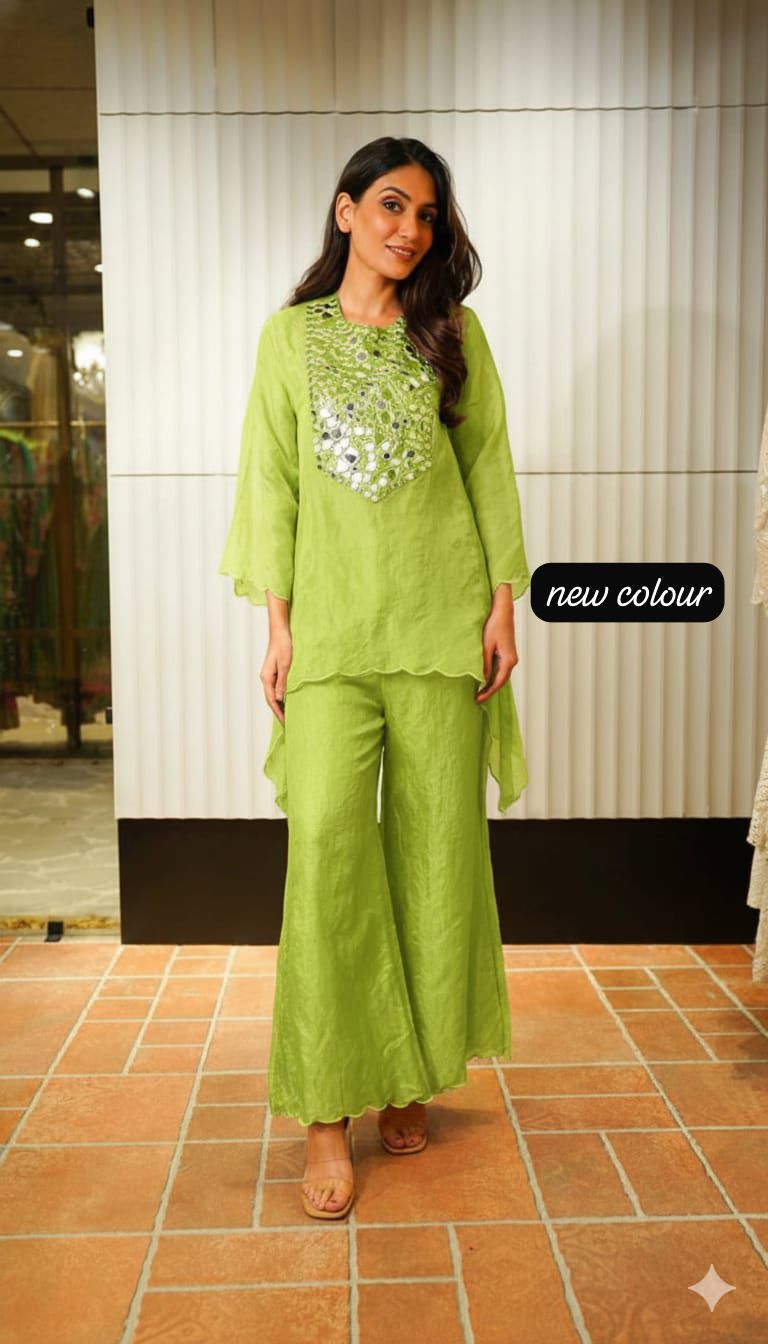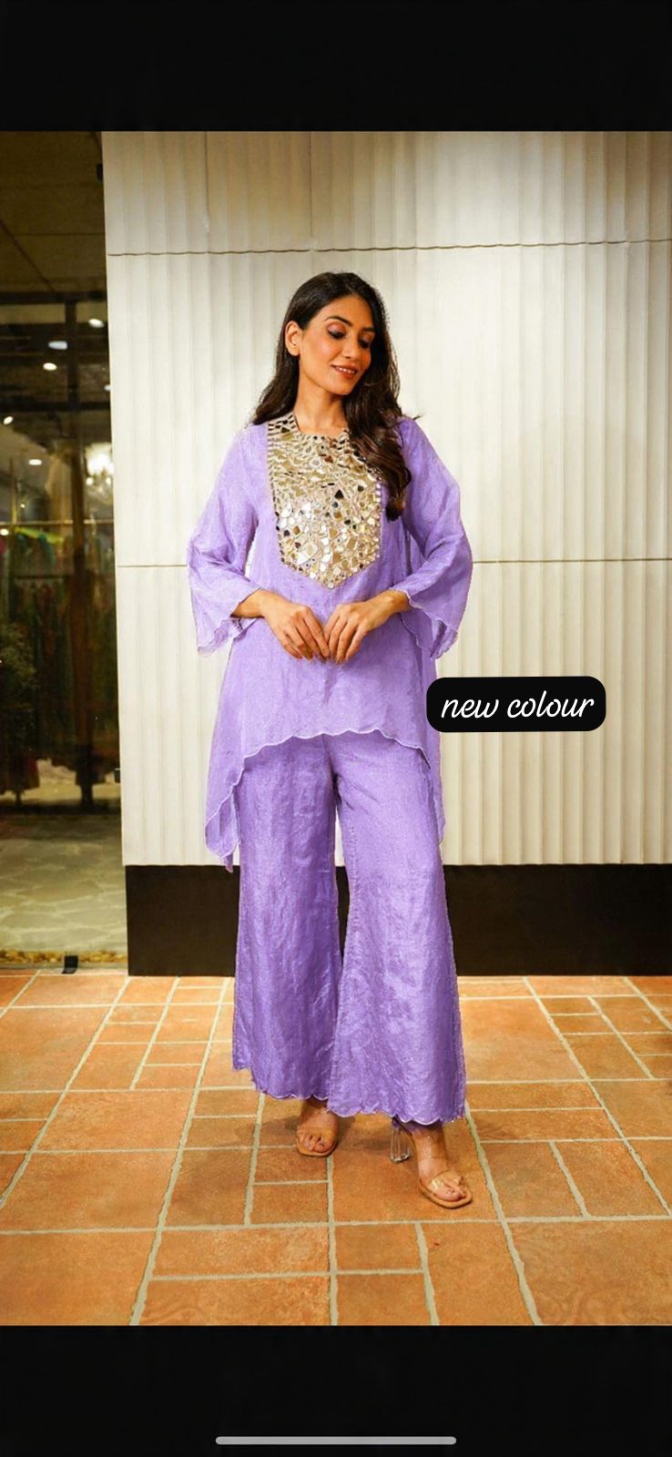 *Presenting Beautiful Heavy quality Tebby Silk Fabric designer festive wear 2pc Cord Set with Semi-Bell Sleeves & Crape Lining.