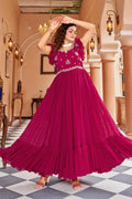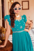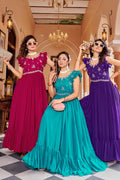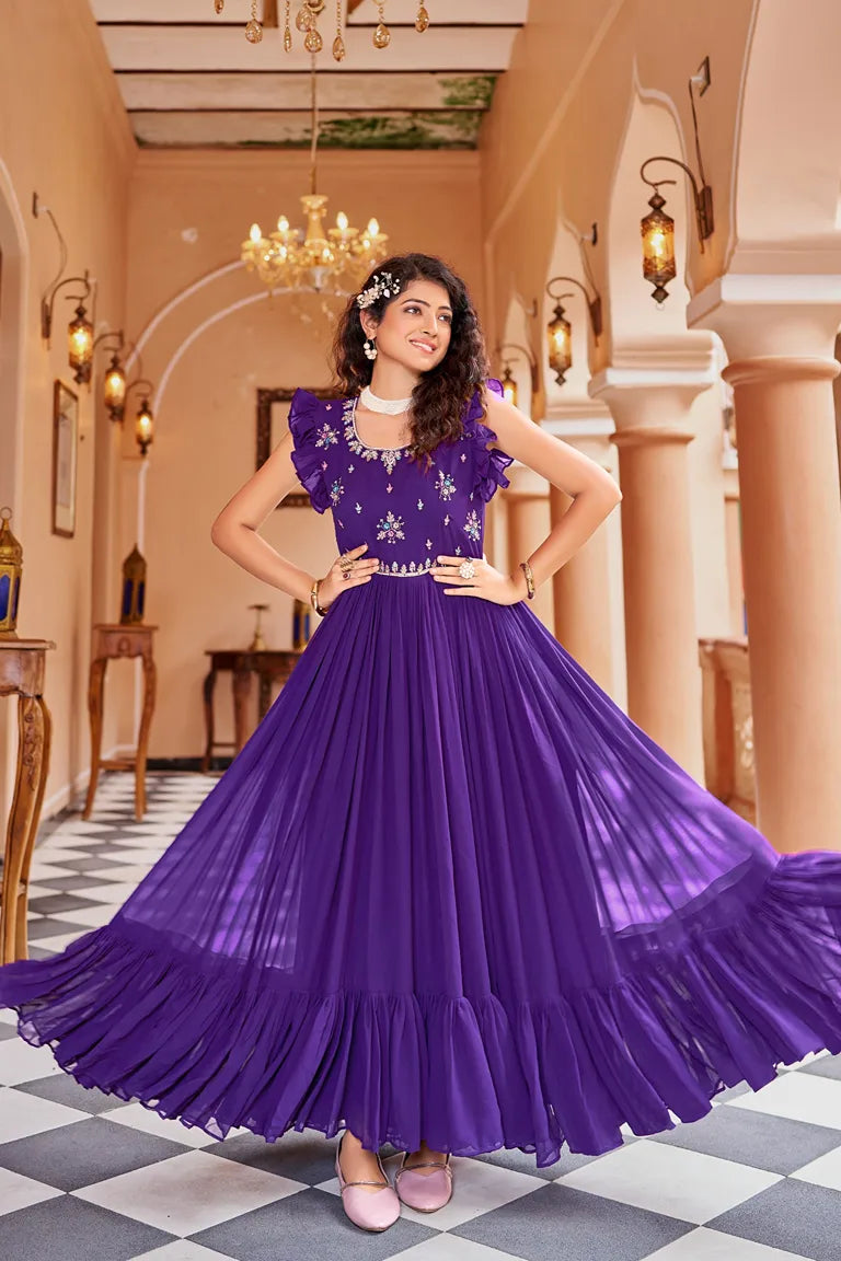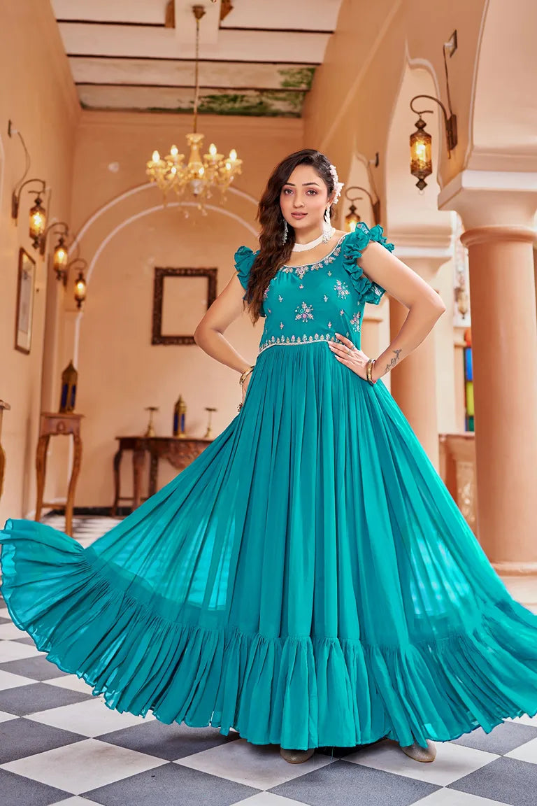 This Faux Blooming Designer Gown is luxury clothing Considered to be high quality Made by Zari-Sequins & Bits work Embroidery. This is Made for Desirable Women's who deserve it.