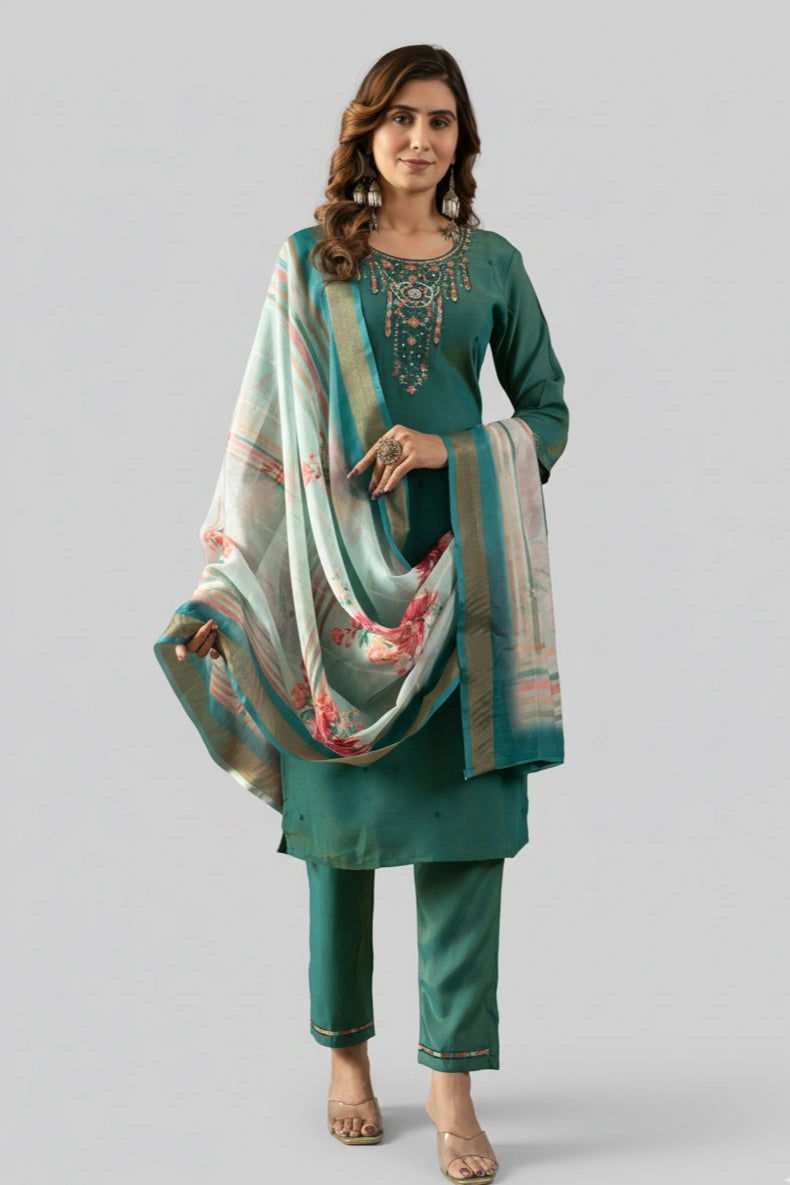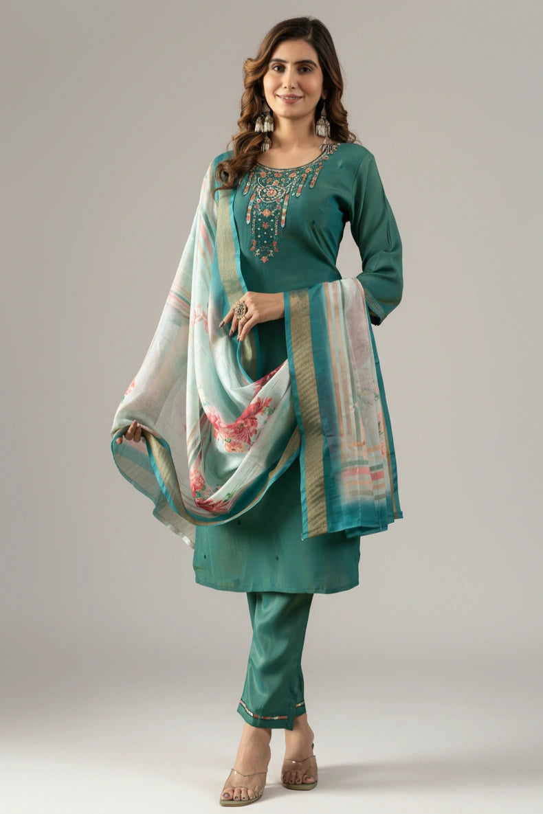 Unveil the charm of effortless sophistication with our Straight Kurti Pant Dupatta Set. Designed to keep you stylish and at ease, it’s the ideal pick for sunny days, festive nights, and everything in between