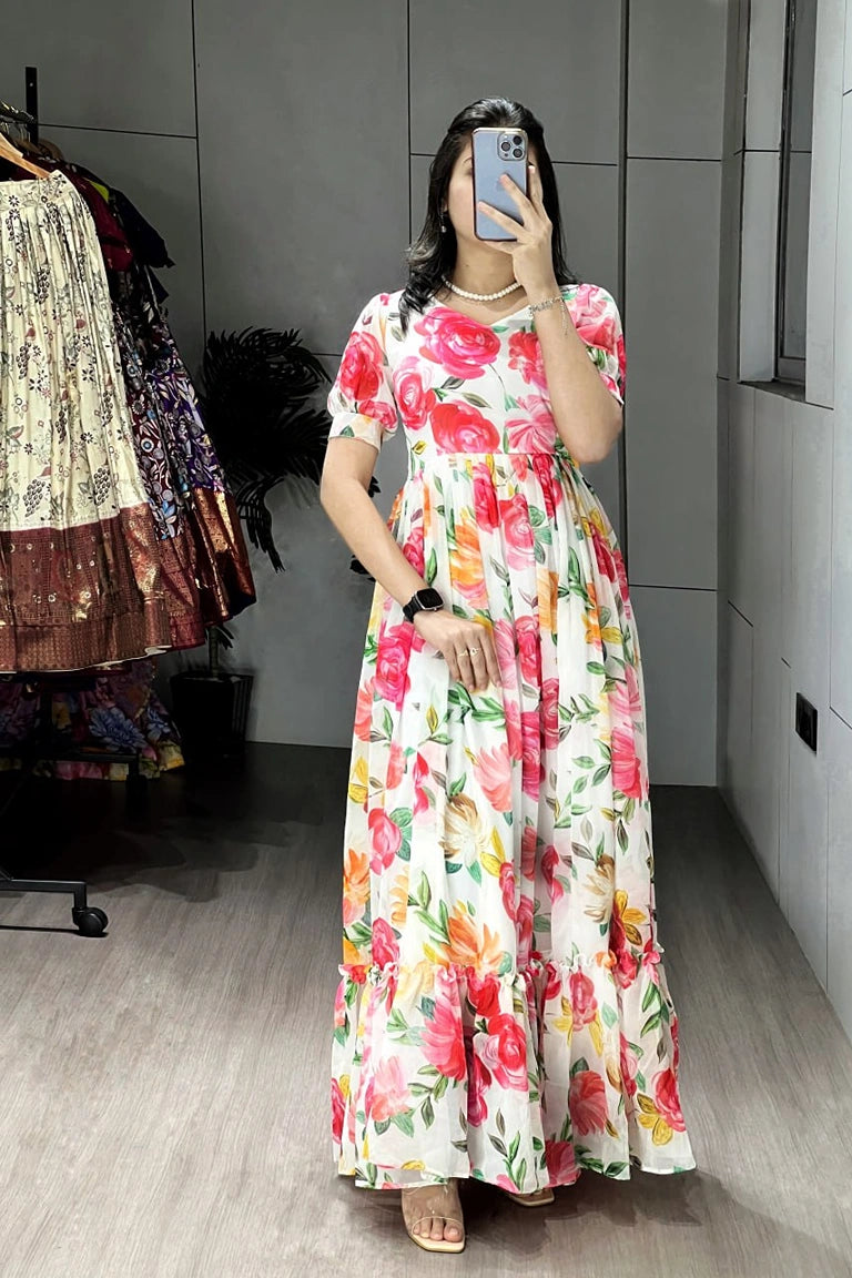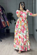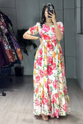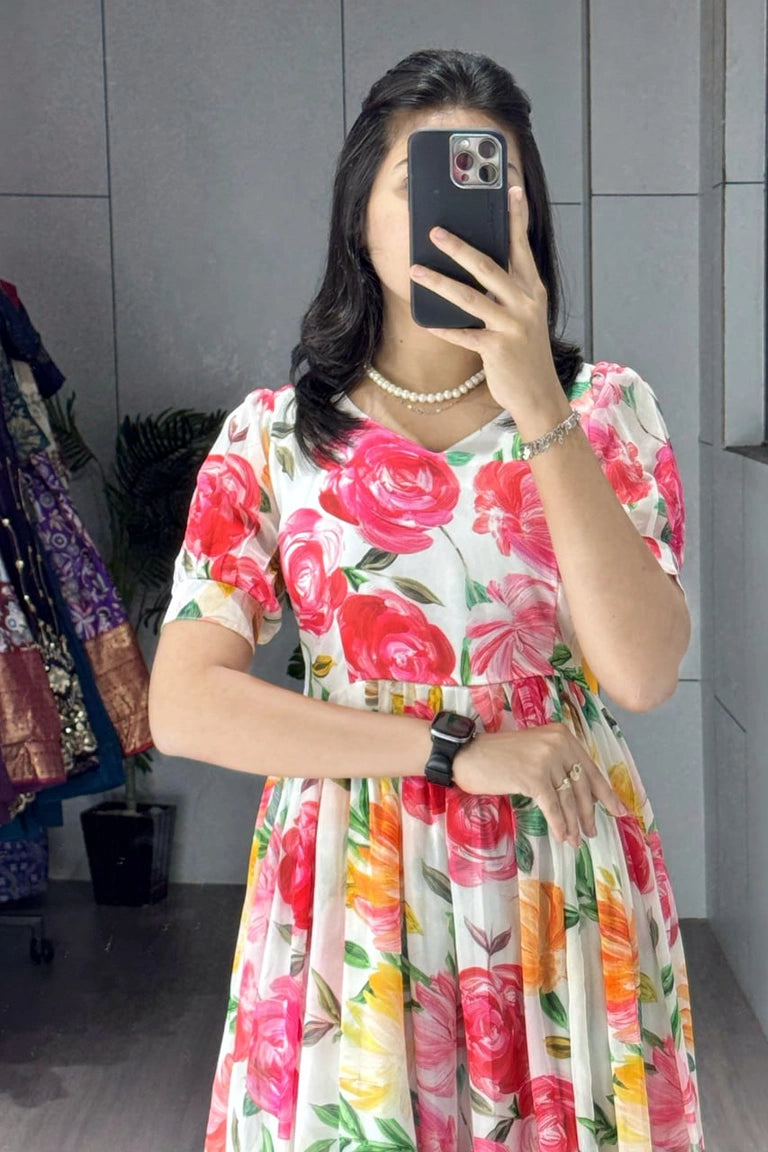 Channel peace and purity in this pastel Floral print Kurti.creating a look that's both relaxed and refined adding joy and flair to your every step.Perfect for weddings, dates, or any day travel you want to feel beautifully you.
