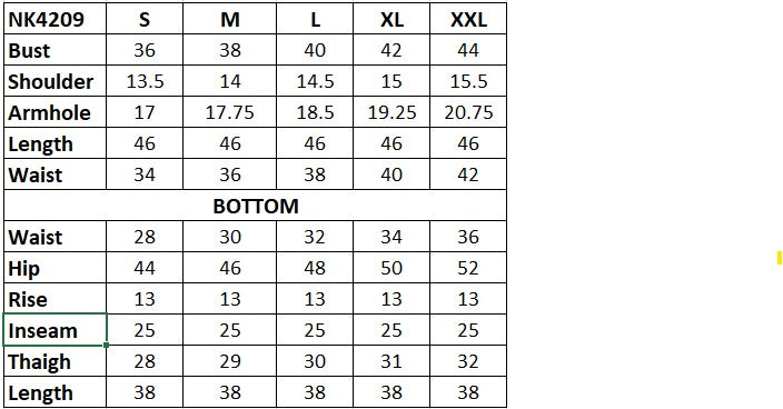 XS-34, S-36, M-38, L-40, XL-42, XXL-44,