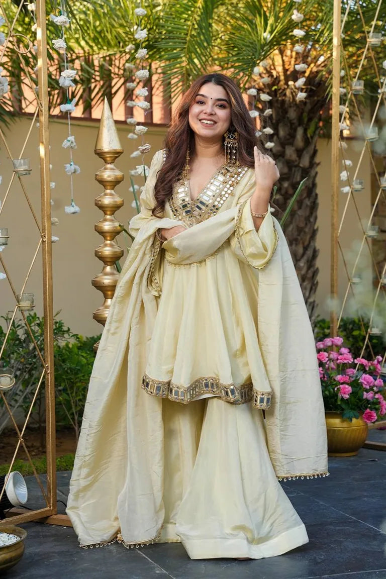 • *Fabric:* *Cosmos Gold Jari Silk+ Full Flair*