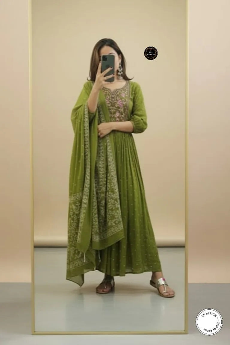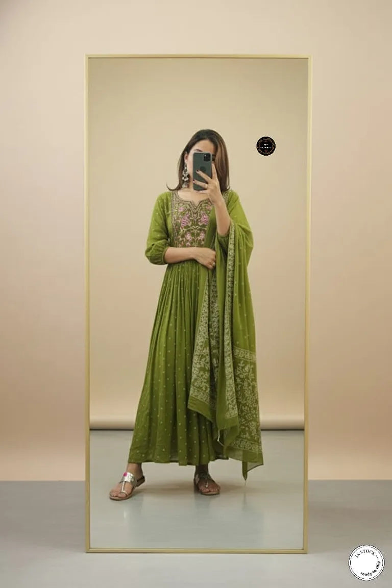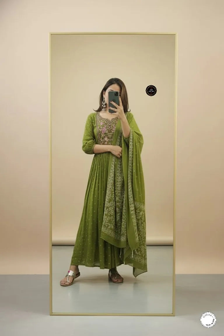 Anarkali kurta setFor a festive gathering, you’ll can opt for our Tier pattern with beutiful work on yoke Anarkali kurti Set