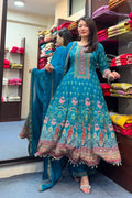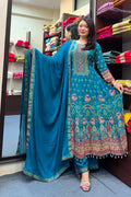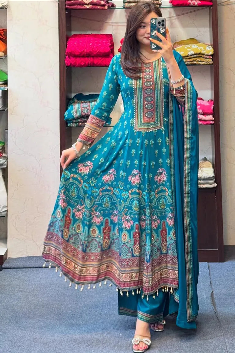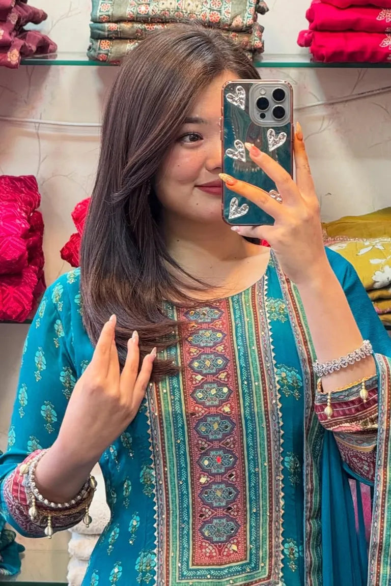 Peacock Blue Printed Kurta Set