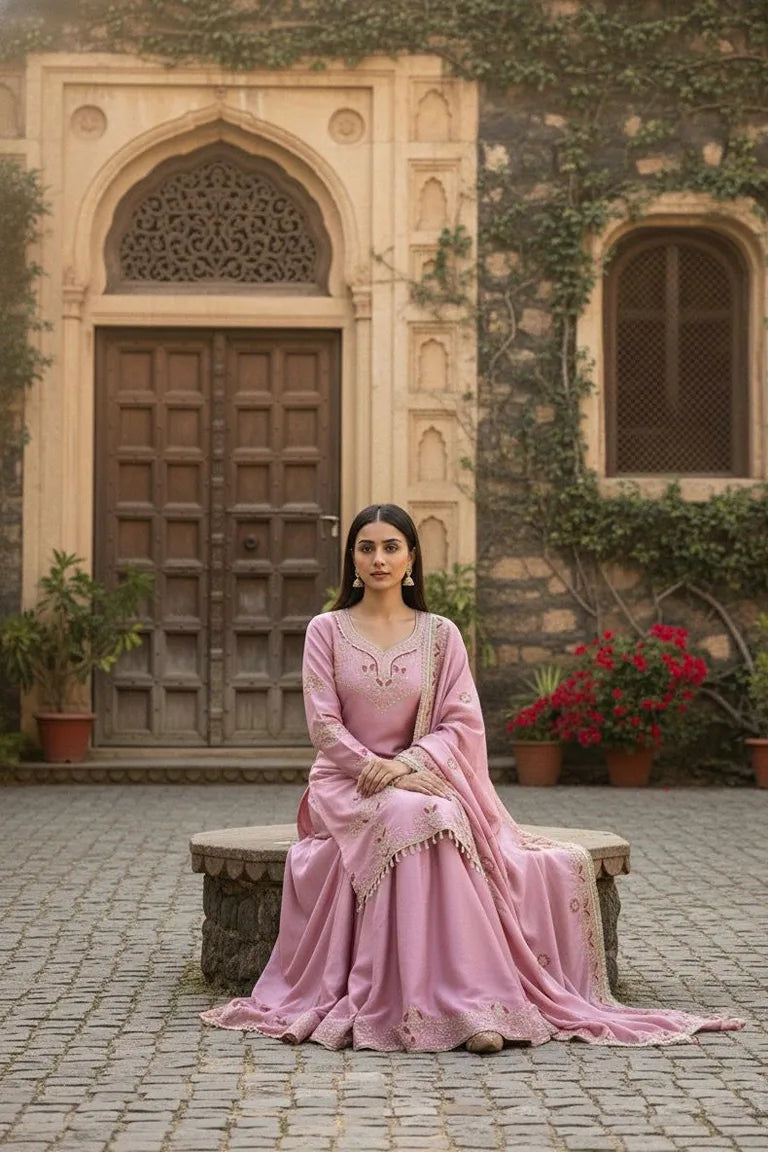 *Top Fabric* : Heavy Pure Chinon With 5mm Embroidery Sequence Work with Full Sleeve
