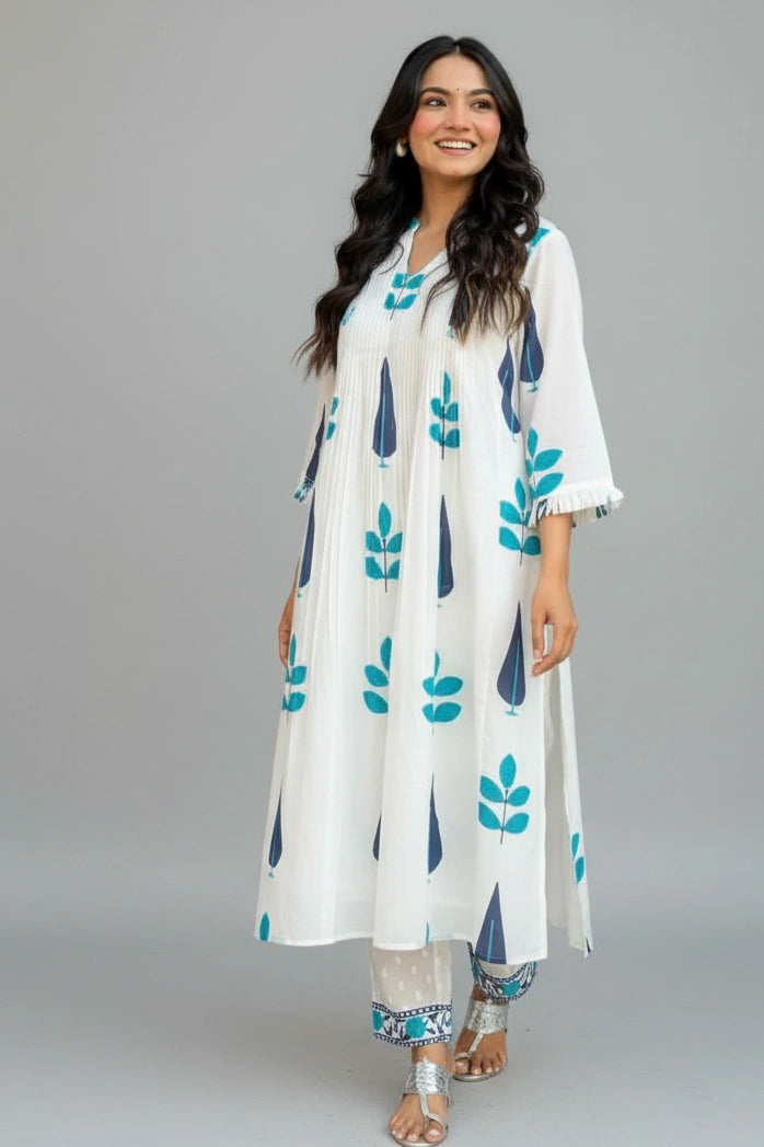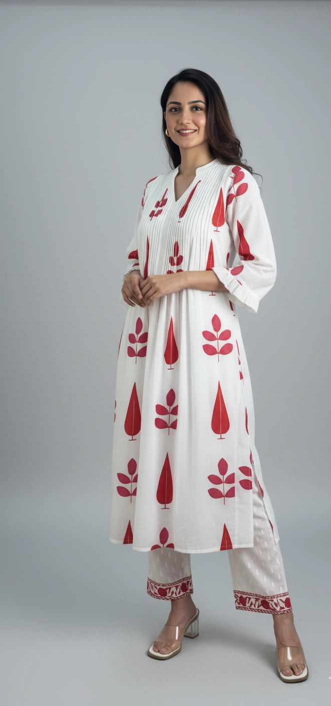 *Step into elegance with our hand block printed kurta set ensemble, adorned with intricate Pintucks on the yok. This artisanal craftsmanship brings together tradition and contemporary style, making it a versatile addition to your wardrobe*