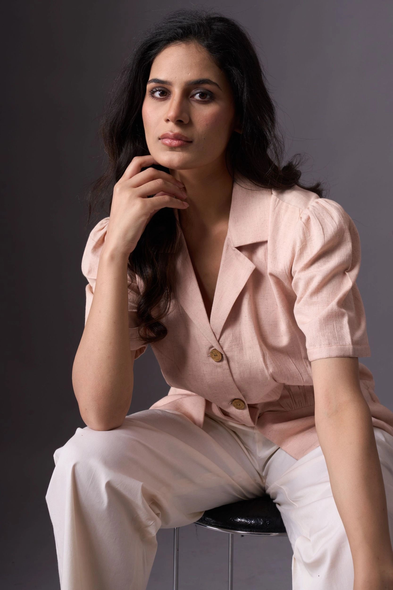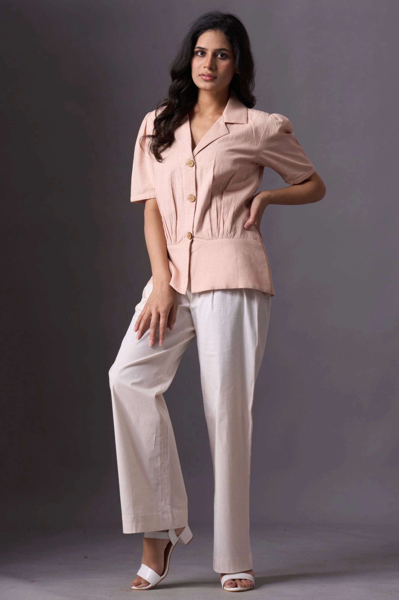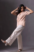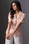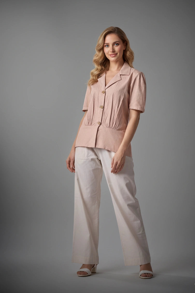 Introducing our Beige Short-Sleeve Button-Up Top, a stylish and comfortable addition to your wardrobe. The beige top features short sleeves, a button-up front with a collar, and a tailored waist for a relaxed yet chic look. This versatile top effortlessly combines style and comfort, making it perfect for various occasions.