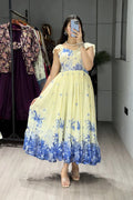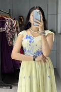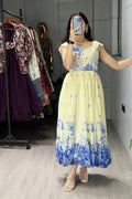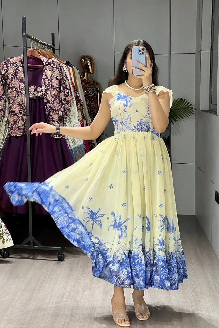 Work : Premium Creamy Floral Printed with Double Frills also Elastic attached on Neck Sides