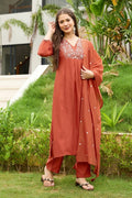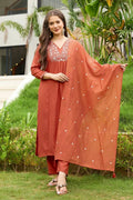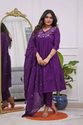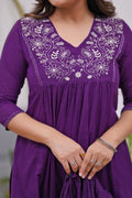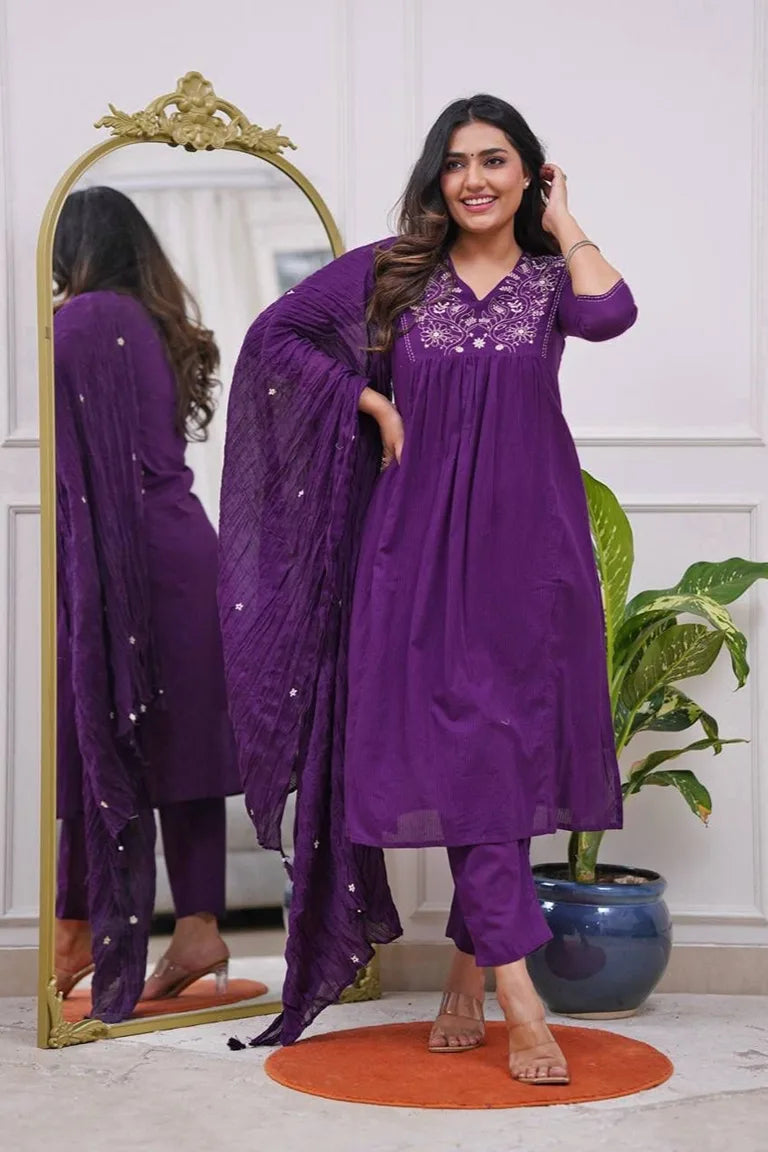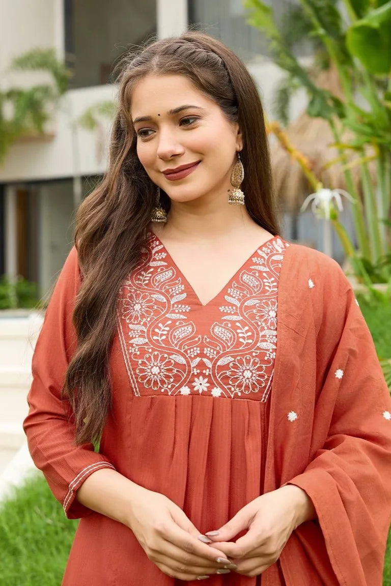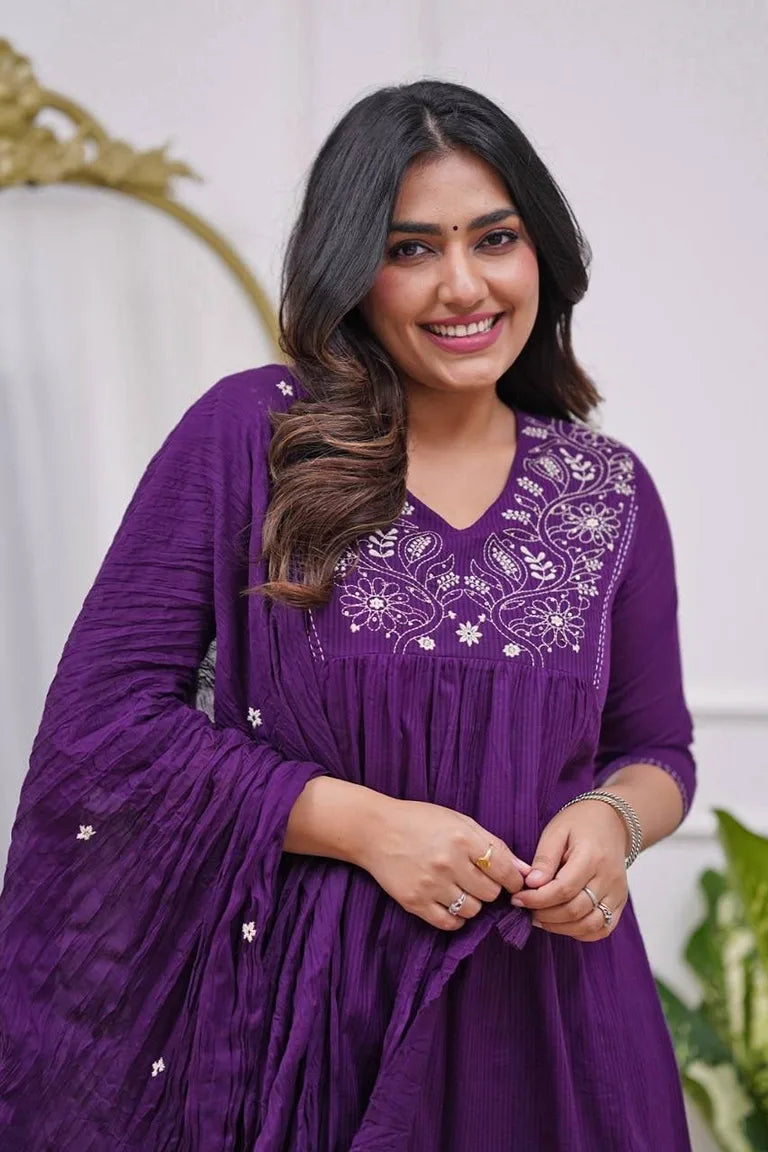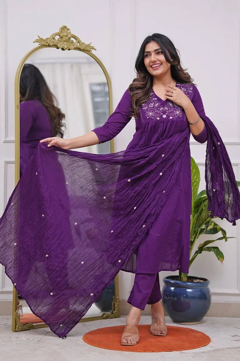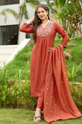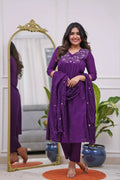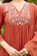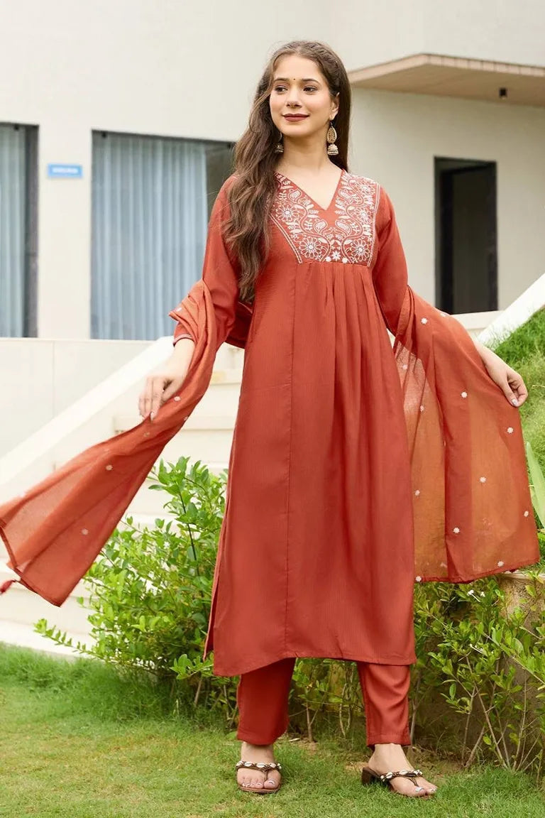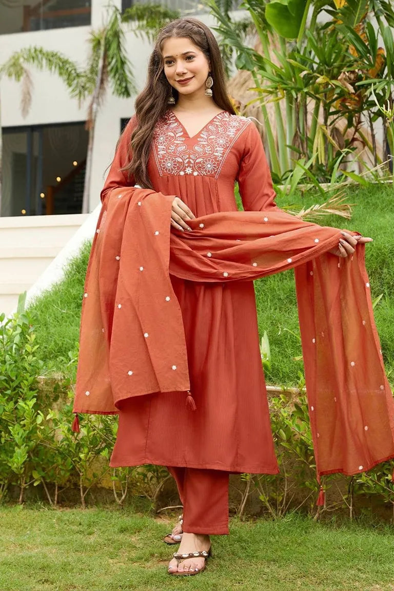 Women's Rayon Embroidered Flared Kurta with Pant And Dupatta Sets