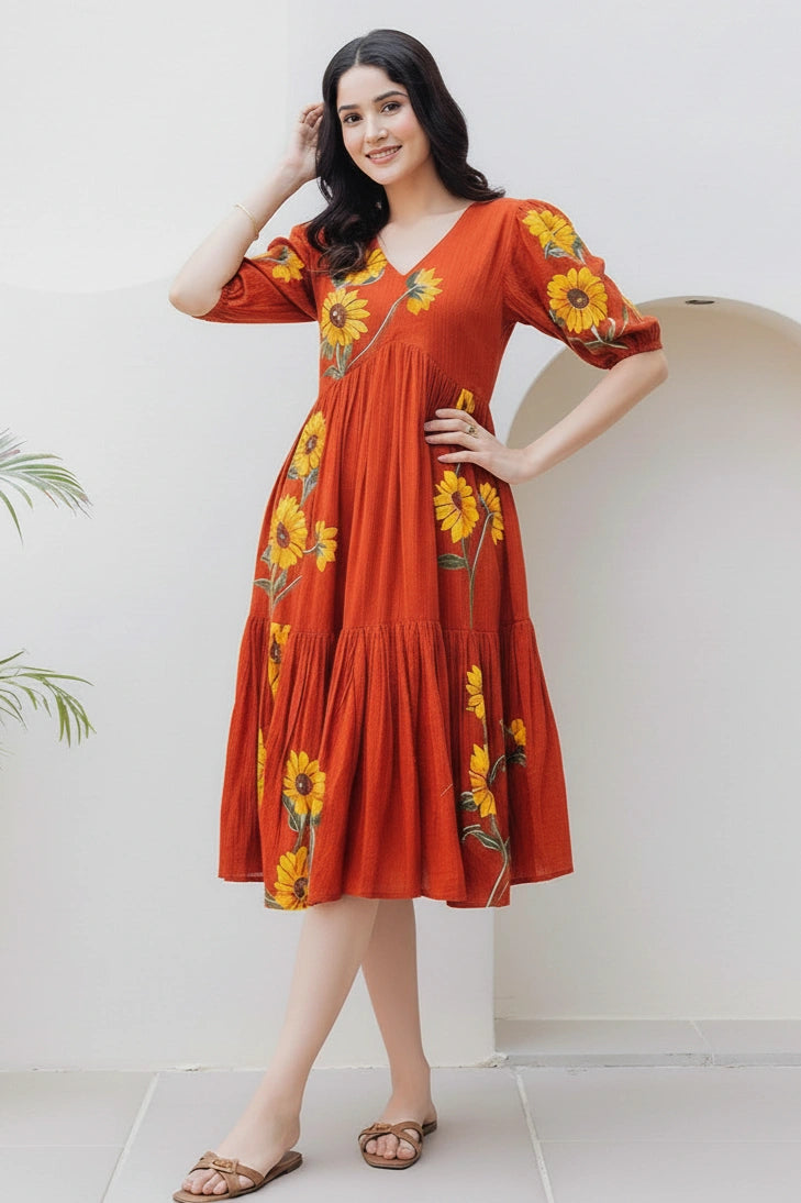 Rust Midi Dress