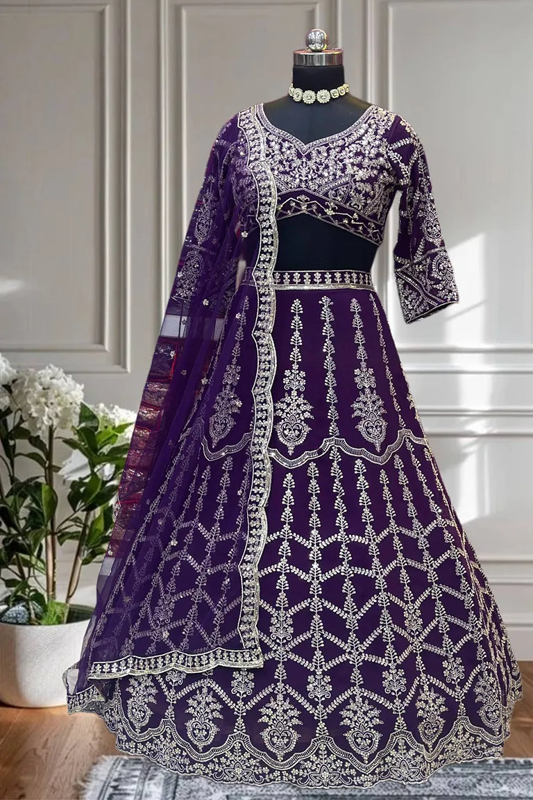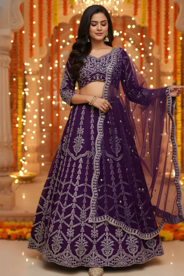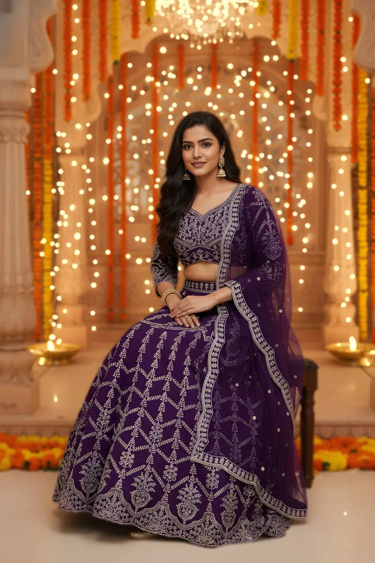 Elegance redefined in this reach wine embroidered lehenga, where tradition meets modern charm. Perfect for weddings, festivities, and grand celebrations!